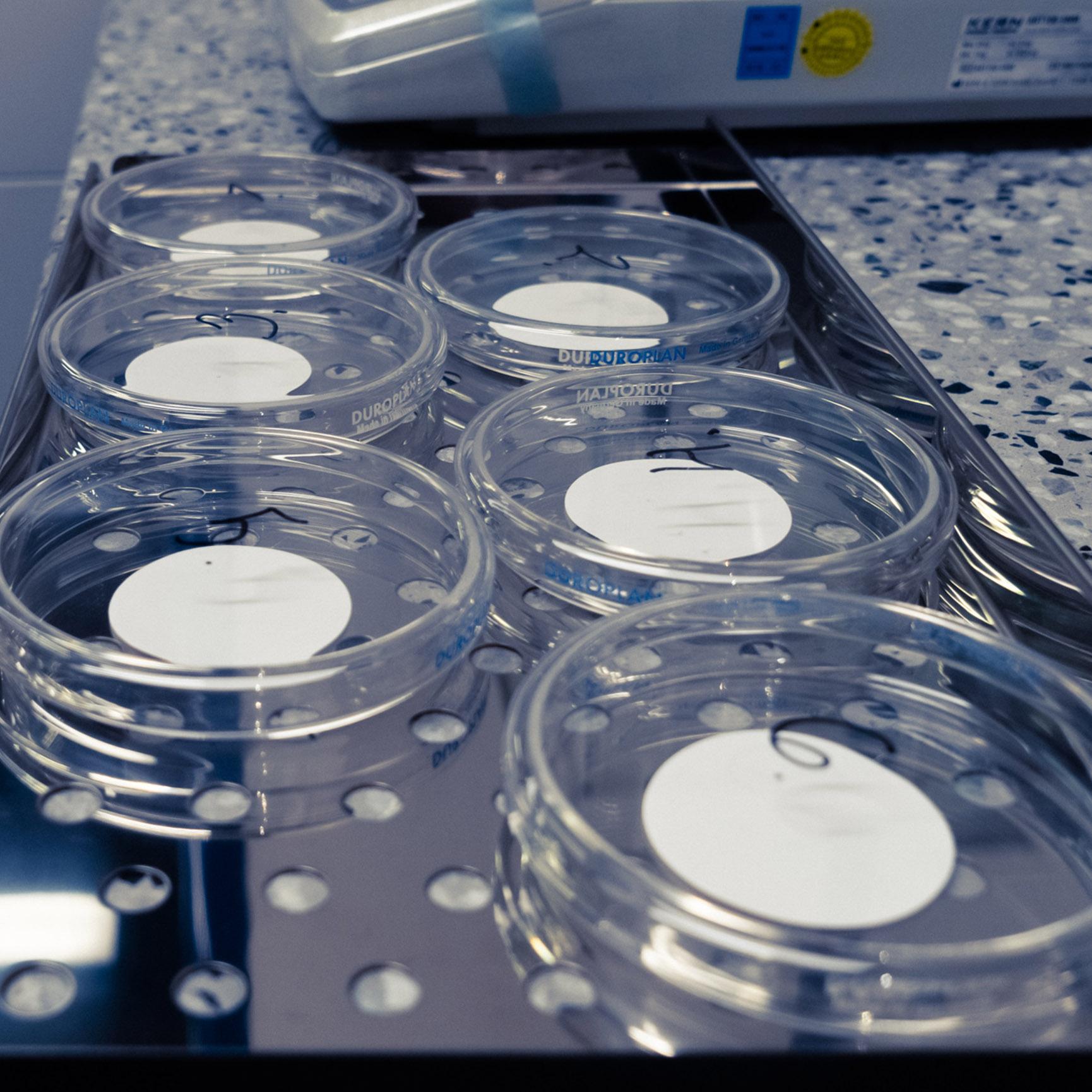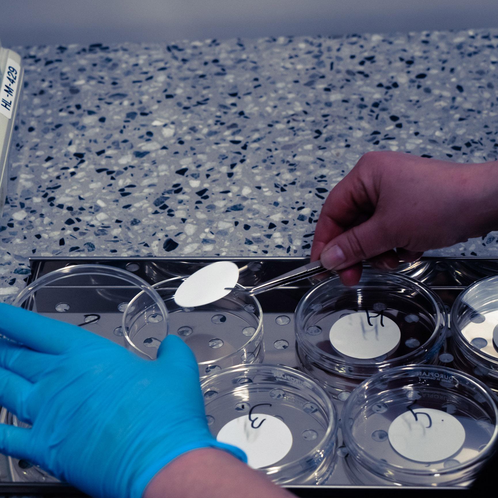 - The rinsed and clean membranes are set into the petri dishes
