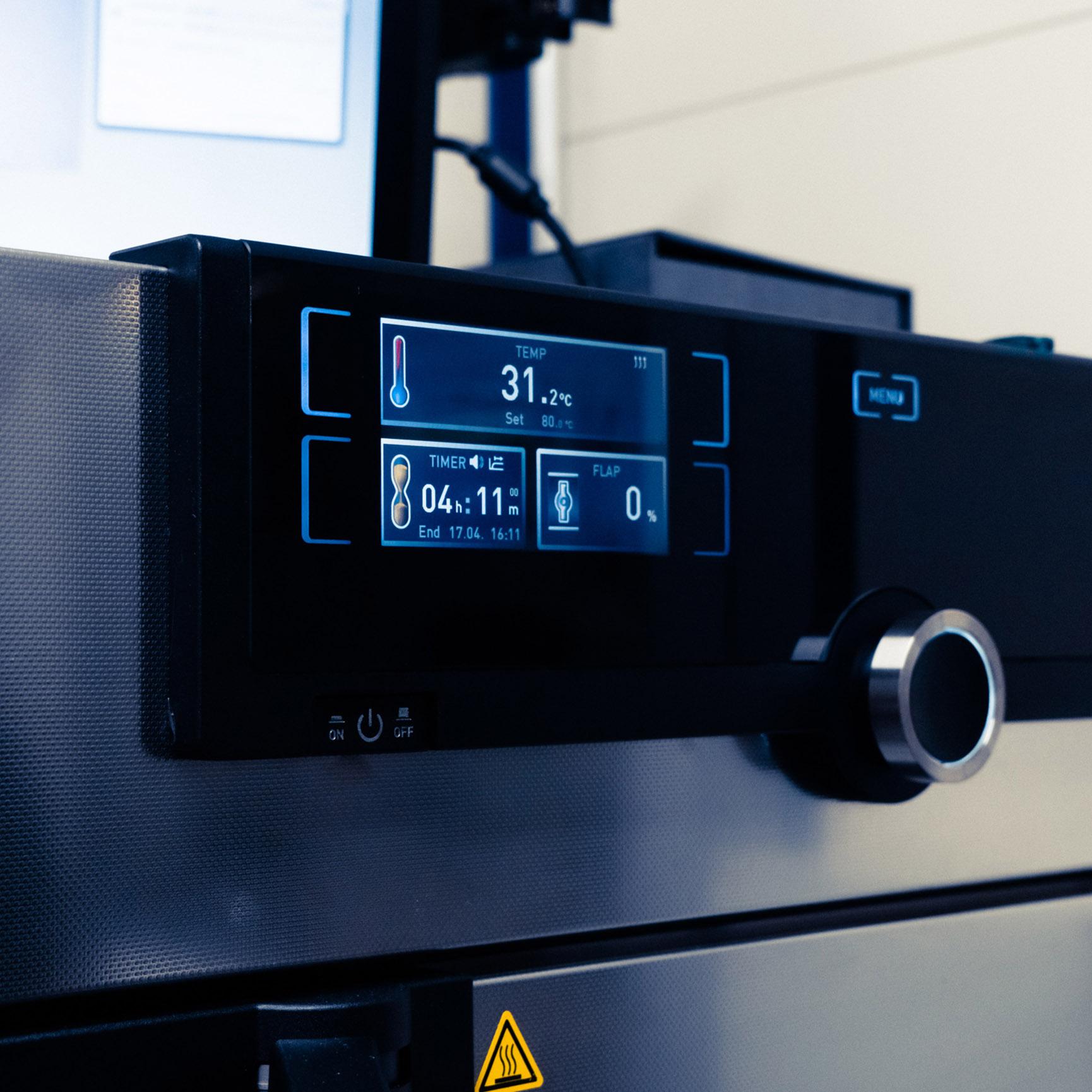 First our expert takes six randomly selected components to be analyzed. Before starting the analysis, one must always check that the exhaust air ventilation system is on: the cleanliness of the air inside the analysis room is extremely important in order to get clear and exact results.